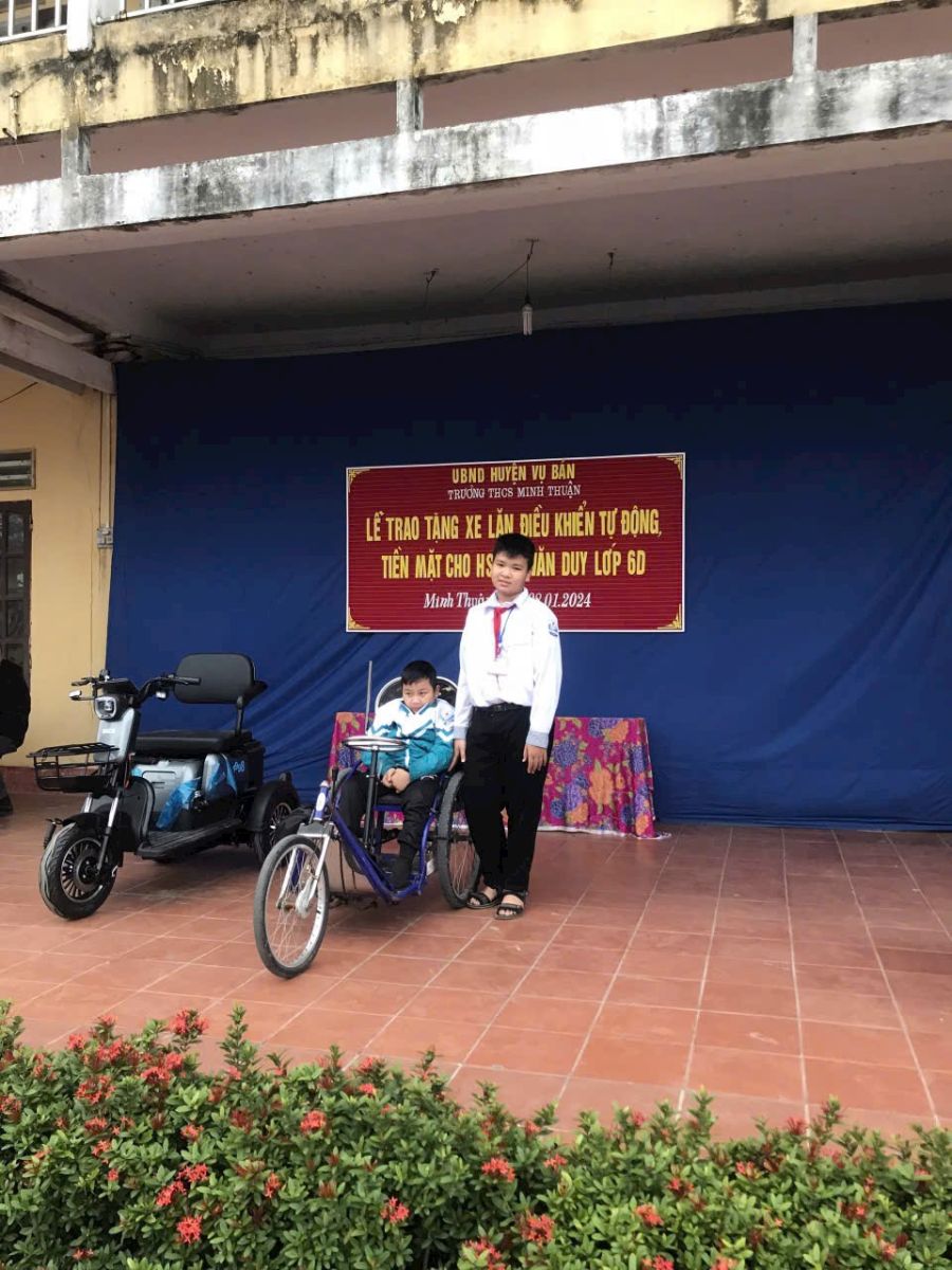 Trao tặng xe lăn cùng tiền mặt cho em học sinh khuyết tật Bùi Bảo Duy lớp 6D