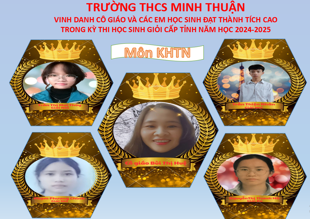 Nhà trường vinh danh cô giáo Bùi Thị Huệ và các em học sinh đã đạt thành tích cao trong kỳ thi Học sinh giỏi Văn hóa cấp Tỉnh môn KHTN năm học 2024 – 2025.